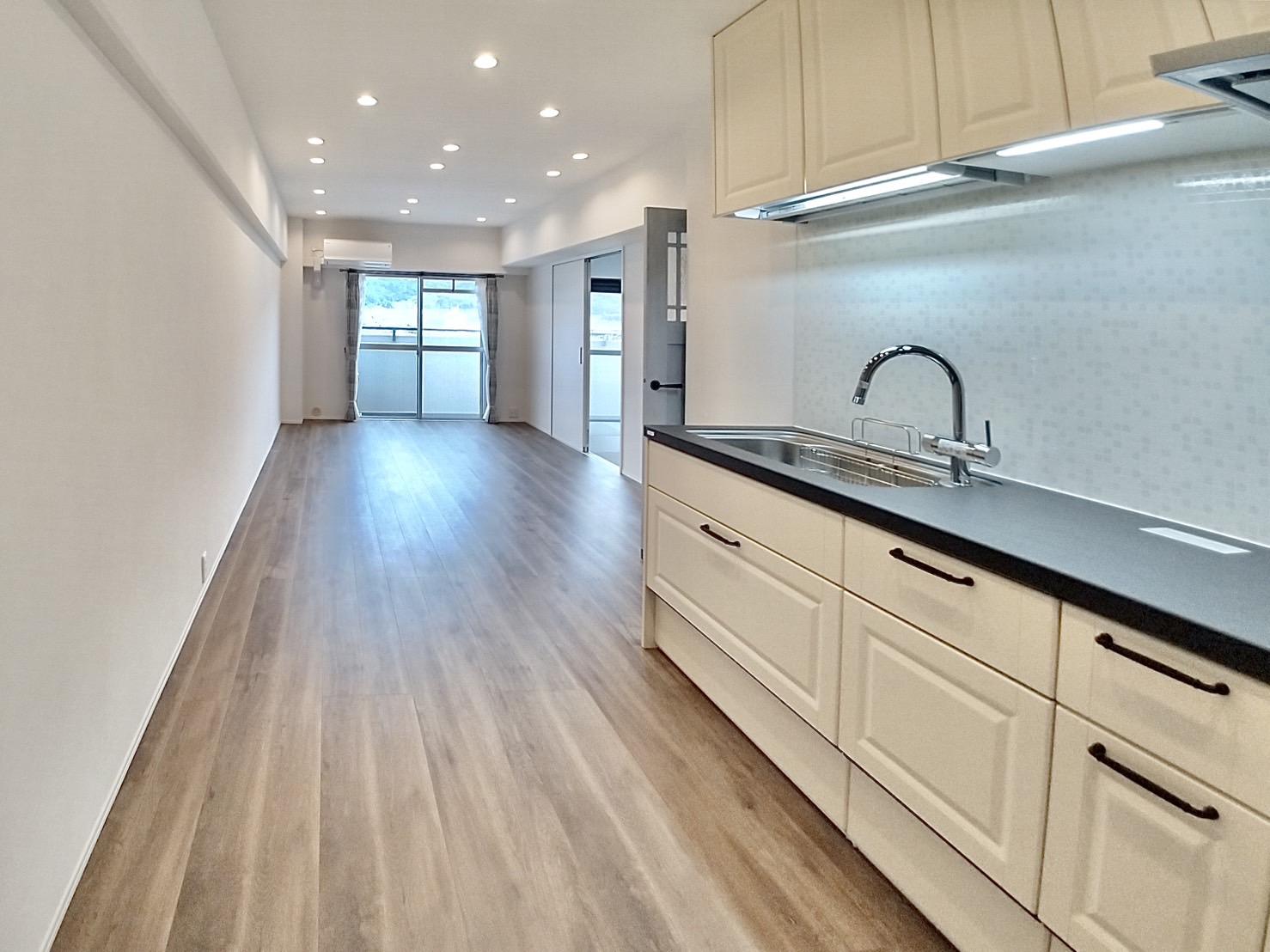 当初はご遠方にて、Zoomでの打合せが多く対面でお話する機会は少なかったかもしれませんが、幾度とオンラインでの打合せにご協力頂き、また弊社にお任せいただきありがとうございました。キッチンのワークトップ(セラミック)が、エレベーター搬入できず、9階まで手運搬したのには苦労しましたが、全て無事に施工完了に至り、ご夫婦のお喜びの姿でほっといたしました。 これからの京都での生活が、素敵なものでありますようお祈りいたしております。