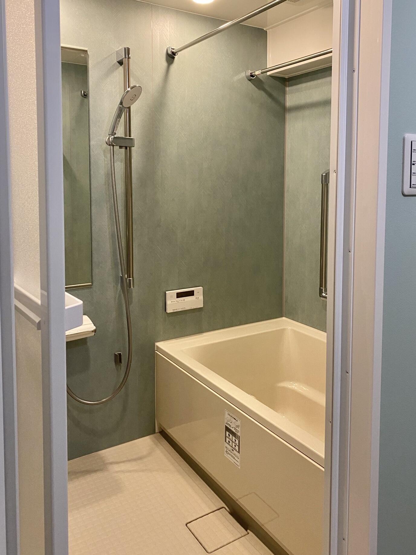 浴室は、落ち着いたカラーでまとめ、一日の疲れをやさしく癒してくれる空間を目指しました。