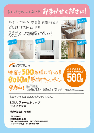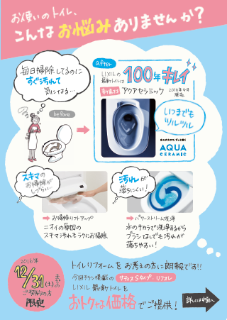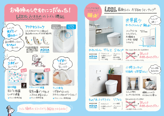 今回、下記チラシ掲載の、LIXIL最新トイレ、「サティスSタイプ・リフォレ」を
