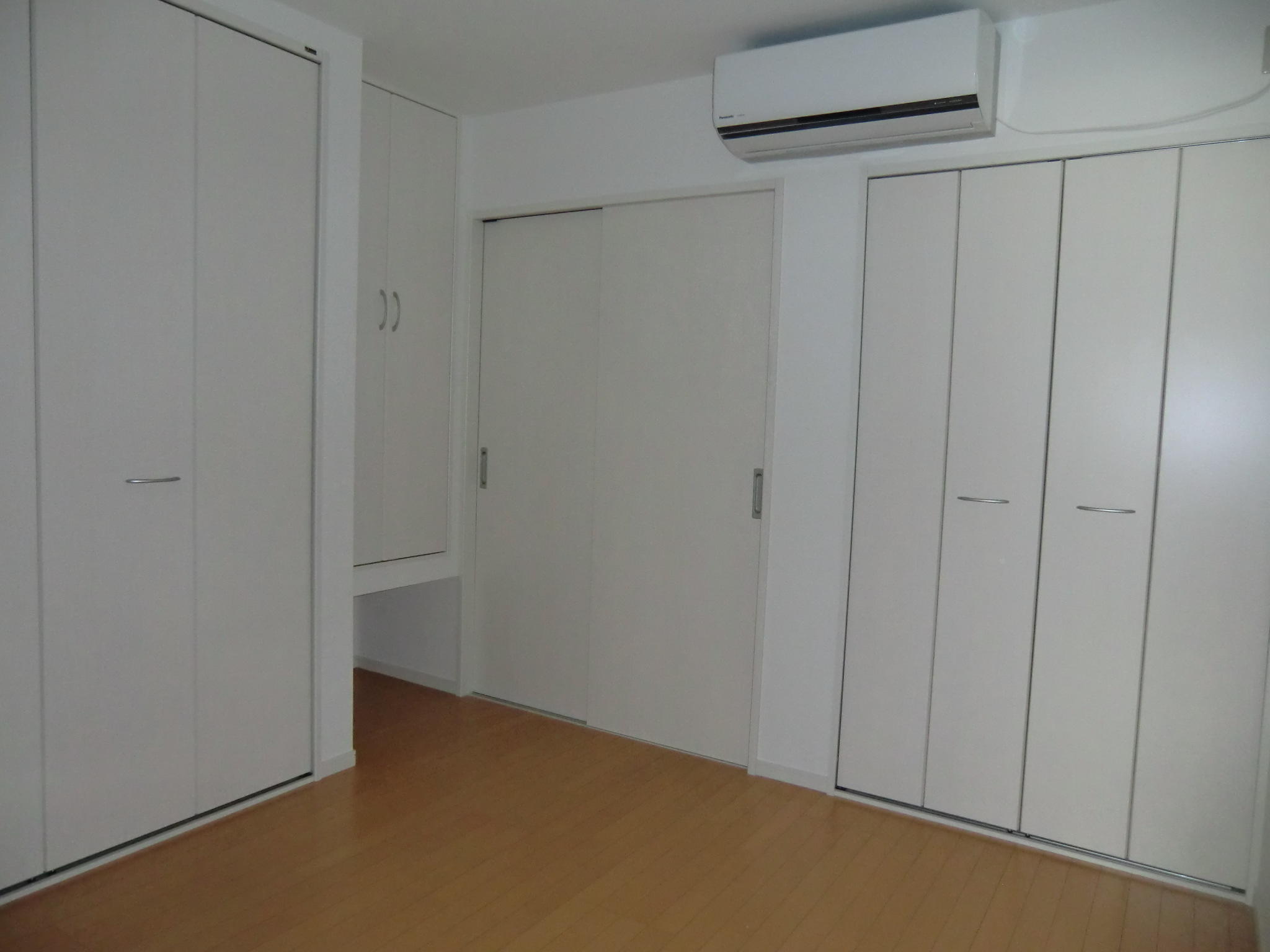 長屋のおうちでスペースも限られていますので、できる限り収納スペースをとり、余計な家具を置かず、お家の中が少しでも広く使えることかと思います。