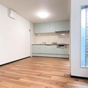 キッチンの扉を淡い色にした事で、優しい雰囲気のリビングに生まれ変わりました。