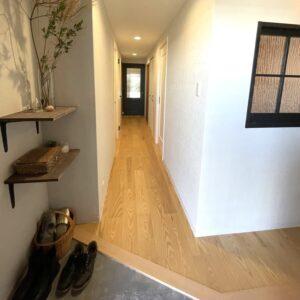 元々あった玄関収納は撤去し、奥様の好きな植物などを飾れる飾り棚だけを設置し、圧迫感をなくしました。
