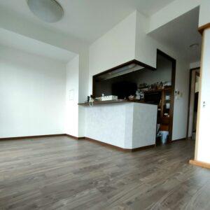リビングは絨毯が劣化してきたこともあり、フローリングに張替えることに。木目のしっかり出たデザインを選定しました。