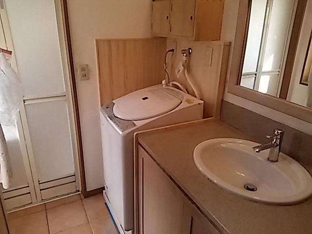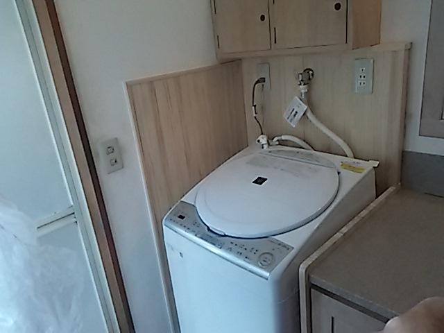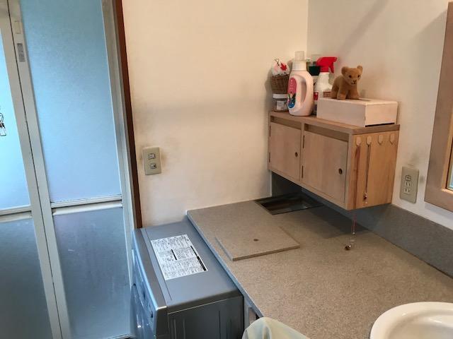 洗面カウンターがあった為に、ドラム式洗濯機と大きさに制限がありました。カウンターを切断することにより、全く制限がなくなり大容量洗濯機も楽々設置可能になりました