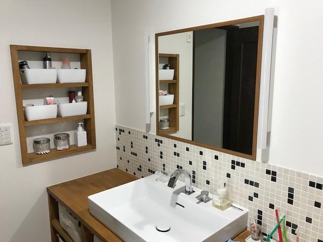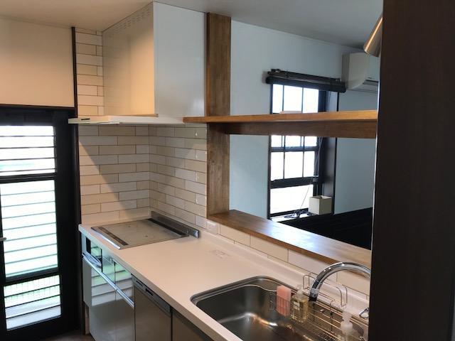 和モダンの落ち着いた空間に、奥様デザインの洗面タイル、キッチンにも重圧感のあるタイルを施し、シンプルだけど他に類を見ない、落ち着いたリフォームとなりました。