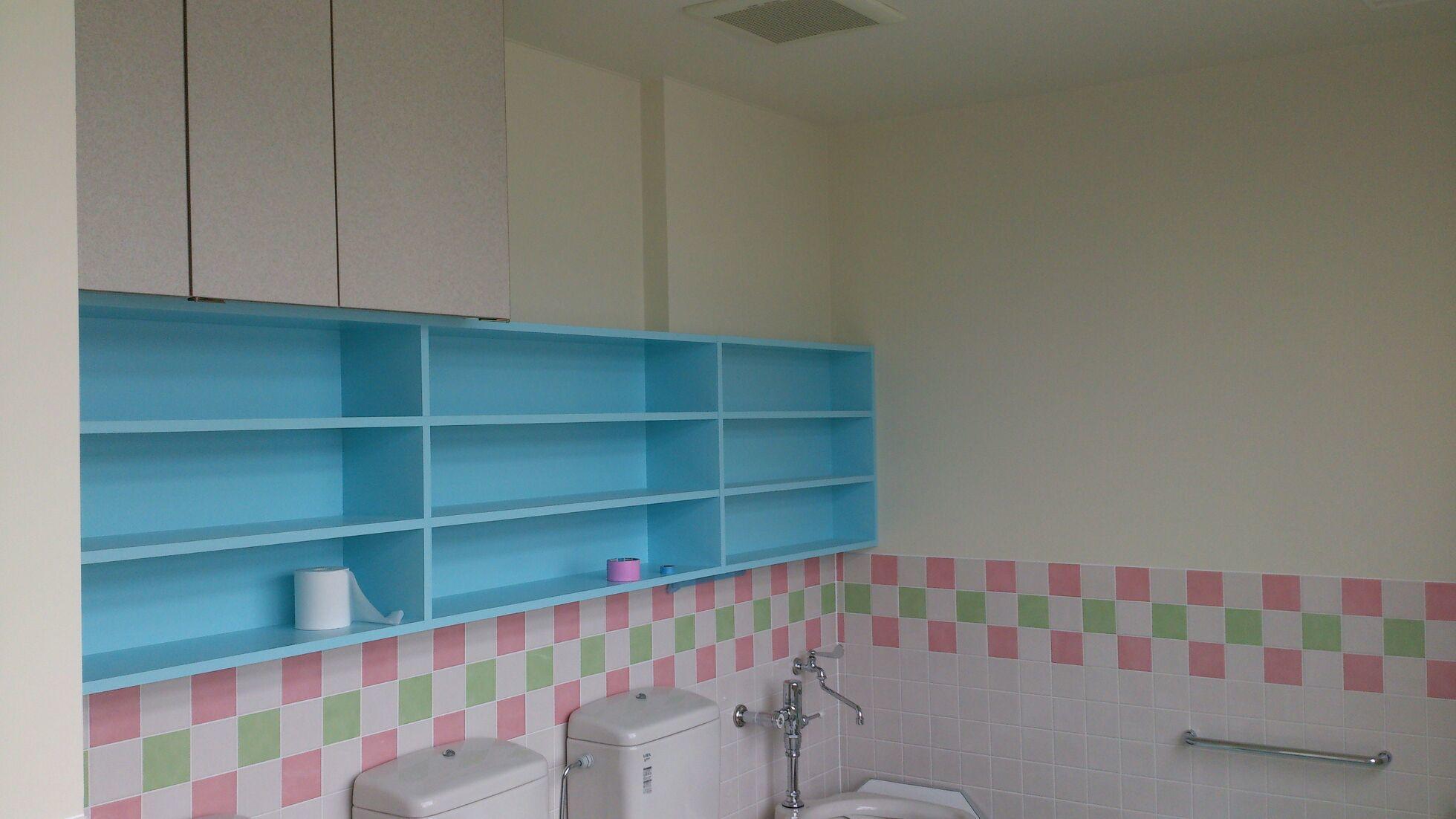 こども達が楽しくトイレトレーニング出来るように、パステルカラーを取り入れて可愛くしました!