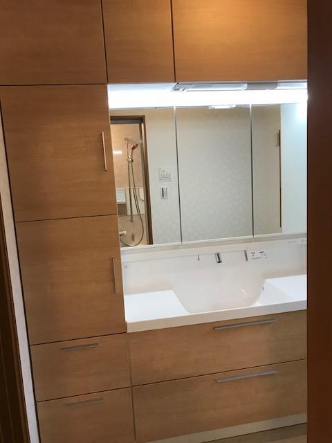 ご夫婦とお嬢様お二人の家庭で、お家でリラックスがテーマでした。豪華なタイルのお風呂はとても素敵なのですが、冬場寒くお掃除が大変な為、少しでも奥様が楽にとのことご要望でした。また、収納にもこだわられて全て収まりすっきり!とのご依頼でした。