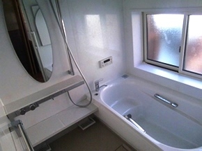 在来の浴室から、最新のユニットバスに改装工事させていただきました。 お手入れも楽になり、バリアフリーや断熱改修もおこないましたので 安全快適な浴室になりました。