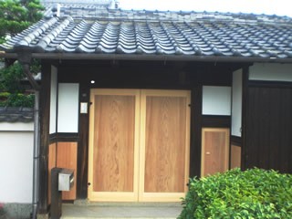 70年前の門の扉を新調しました。これだけ大きく立派な杉の板目の単板を探すことは大変でした。お客様と一緒に材木屋さんへ行き、気に入った板を選んでいただきました。