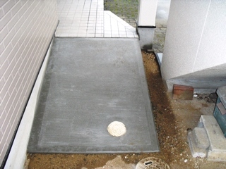 車イスでの出入りをしやすくする為、コンクリートでスロープを新設しました。介護保険を使用して補助金がおりましたので、お客様の負担は1割ですみました。