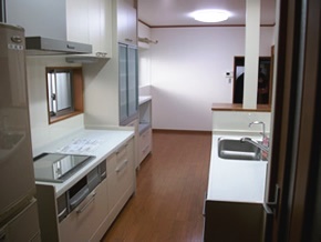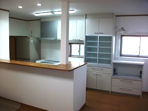 今回はシンクとコンロが分かれた少し変わったキッチンを採用しました。 ご夫婦がゆっくり過ごせる快適なLDKに生まれ変わりました。