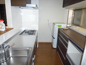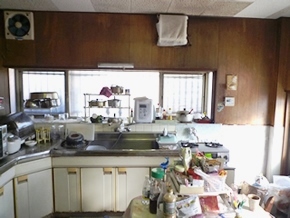 キッチン老朽化のためリフレッシュ。 システムキッチン新設の際、台所全体を改装するよう計画 壁付キッチンから対面キッチンにしたため お孫様の顔を見ながら料理ができます。 これから食べ盛りのお孫様のために腕を振るえますね!