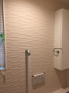 今回はエコカラットをトイレの壁面1面とリビングの1面に絵画のように施工されました。