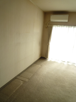 この度は、壁・天井のクロスの張替えと床のカーペットをフローリングにするリフォームを行いました。