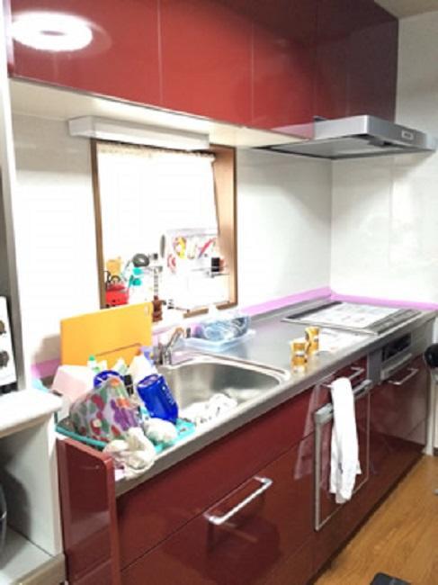 キッチンの改装工事を行いました。工事前はL型のキッチンで流しのところに立つと背面に食器棚があり狭くなっていました。今回、Ⅰ型のキッチンにすることでとてもすっきりしました。