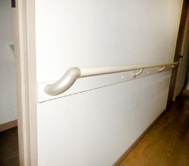 介護保険を使って廊下に2箇所手摺を取り付けました。お客様が手摺の取付位置を歩きながら考えられ、ご家族の皆様の身長なども考慮されて取付位置を決められました。 内装に合わせてお色も決められ手摺がスタイリッシュに見えます!