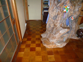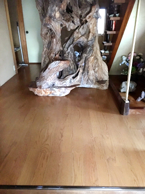 据置きキッチンの取替と、玄関・リビング・キッチンのフローリング張りを行いました。