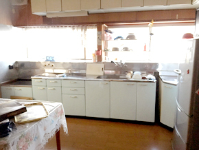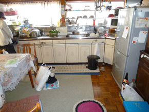 築35年のお家で、毎日通る玄関やキッチンの床がふわふわしていたので、フローリングを重ねて張りました。 下地も補修し、また、重ねてフローリングを張ったことで段差も小さくなり、安心して歩けるようになりました。 据置きキッチンの取替も行いました。 今までと同じサイズでの据え置きキッチンがなかったので、物が置けるように少し隙間を開けました。 使えるところはそのままにしたことで、費用を抑えることができました。 トイレは段差が10cmもあり、夜トイレに行くときが怖いと言われていたので、床を5cm上げました。