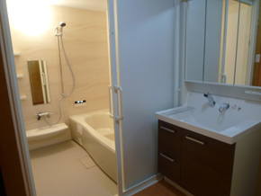 築30年のタイル貼りの浴室で、古くなり、今までいろいろ壊れては直し、壊れては直し。。。で使われてきたのですが、 今回給湯器の調子が悪くなったことがきっかけです。 シャワーと窓の位置の関係で、浴槽の向きが変わり、少しゆったり入れるようになりました。 ドアは引き戸にして、入り口の段差も解消されました。 とっても明るくなり、快適なお風呂になったと喜んでいただきました。