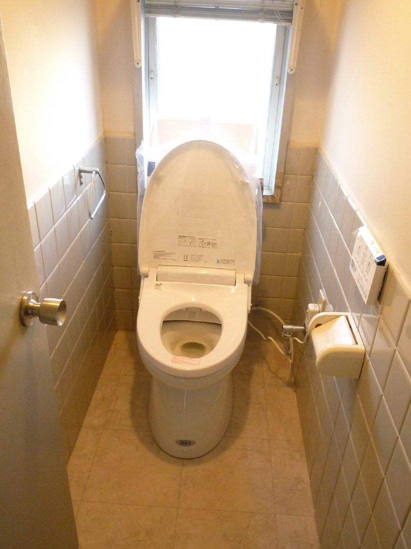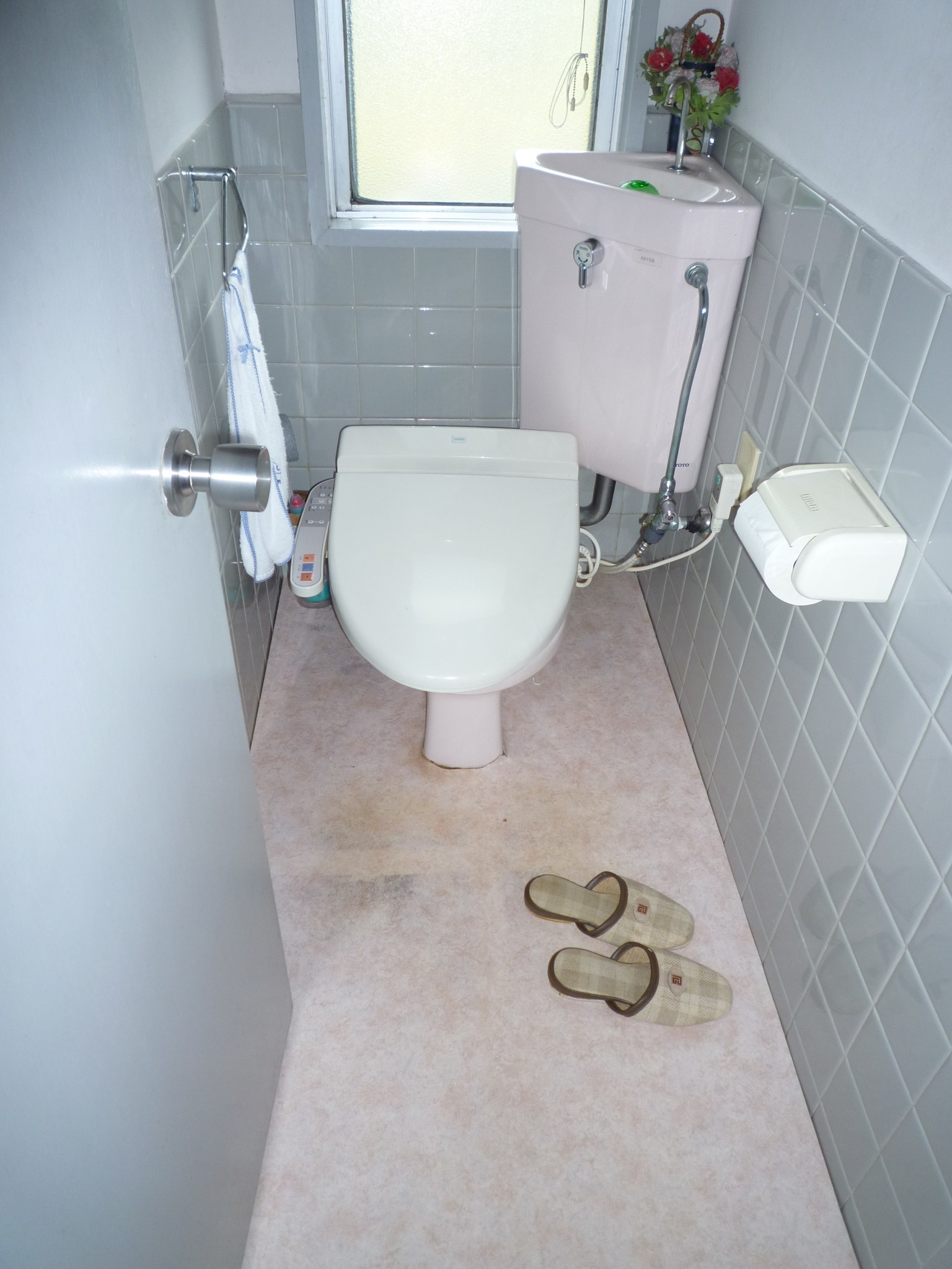 段差があり、便器もタンクが隅付のため掃除がしにくいのが悩みの種だったそうです。 タンクと一体型の便器、床も1段上げて掃除がしやすくなりました。