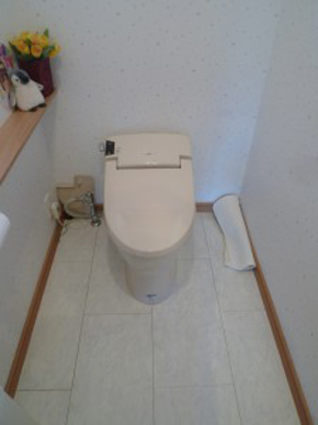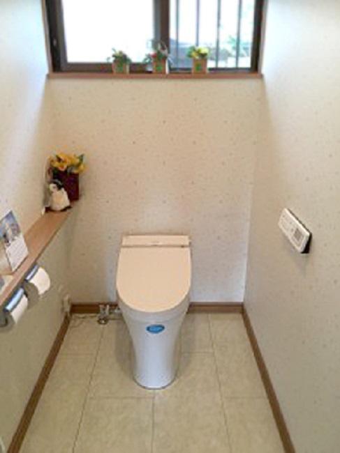 5年ほど前にトイレを改装された際、便器は以前から使っていたものを再利用されていました。 内装はまだきれいだったので今回は内装はそのままで、便器のみ取替ました。写真では分かりにくいですが、カラーもアイボリーから真っ白なピュアホワイトに変え、とてもすっきり引き締まりました。