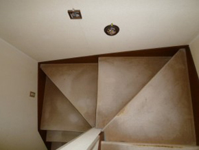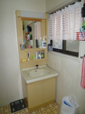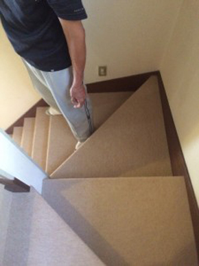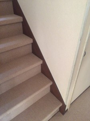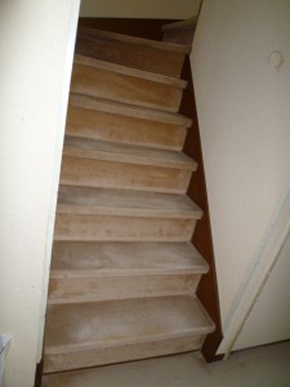 浴室はタイル張りで寒い。 さらに天井はとても高く、掃除するのも危険で一苦労でした。 いくら掃除をしていても、カビはとりきれませんよね。。。 特に天井は掃除しにくい。 新しい浴室は天井も少し低くなって、さらにお掃除もさっとしやすくなってます。 脱衣室の内装もやり変え、洗面化粧台も取替ました。 限られたスペースで収納が少ないと言われていたので洗面化粧台の上に収納を新設しました。 階段・廊下のカーペットがところどころ剥げてきていたのでカーペットの張り替えも行いました。