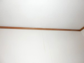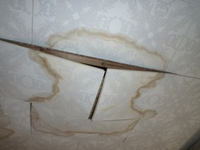 雨漏りが原因で天井にシミが、、、下地も落ちかけています。まず屋根を補修し、内部天井の傷みの激しいところは差し替え、ベニアを重ね張りしたうえでクロスを張りました。屋根の定期メンテナンスをおすすめします。