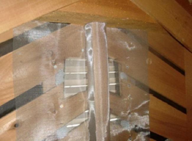 屋根裏にコウモリが侵入して、糞がたくさんありました。原因は通気口のすきまからコウモリが入ってきていたようです。本来であれば、外側からふさぐのがいいのですが、足場も必要になるため、今回は内部からふさぎました。屋根裏の掃除もあわせて行いました。
