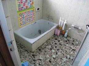 以前はタイル張りのお風呂でした。タイルの傷みが気になっておられ、浴槽入れ替え検討からでしたが、お部屋の改装を機にバスユニットに入れ替えされました。