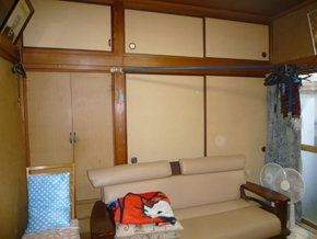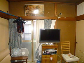 長年使われていたため、襖はシミができたり、壁もぽろぽろとはがれてかけていました。 壁は一度既存の壁の上にベニヤ板を張り、その上にクロスを貼りました。 テレビコンセントはとても古いもので取り替えることができなかったため、既存のままにしました。 間風が寒いとのことでしたので、欄間は塞ぎました。 照明は変えていませんが、とても明るくなったと喜んでいただきました。