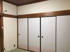 和室の襖張替え、畳新調、壁をクロスへ改装工事をさせていただきました。