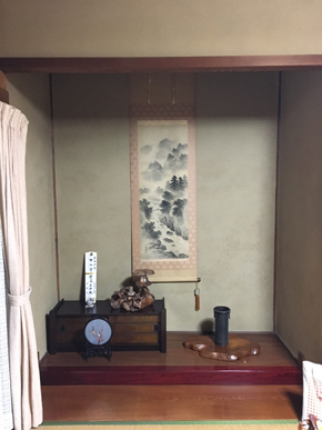 気がついたら床の間のジュラクがぽろぽろと剥がれてきていました。ところどころシミのようにもなってきていたので改装しました
