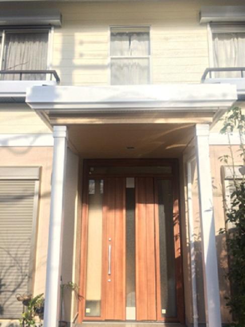 玄関ドアの改装工事を行いました。 約20年前に新築された時の、白色の玄関ドアが付いていたのですが、今回他の改装工事をするにあたって、併せて玄関ドアも新しい物に新調しました。