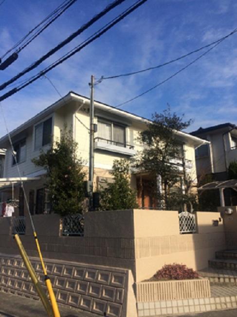 新築から10年位で一度外壁と塀を塗られていたのですが、色褪せがあり、防水性能も大きく低下していました。 今回は内部の改装時に窓サッシの入れ替えを行ったこともあり、外壁の塗装を行うこととなりました。 また、併せて屋根と道路沿いの塀の塗装も併せて行いました。1階と2階の色を変えてツートンカラーにしています。 ツートンカラーに塗り分けしてもお値段は変わりませんので、ご希望の方は是非ご相談ください。 また、塗装下地は防水性能の高い物を使用しておりますので、家の性能向上も併せて行うことができました。