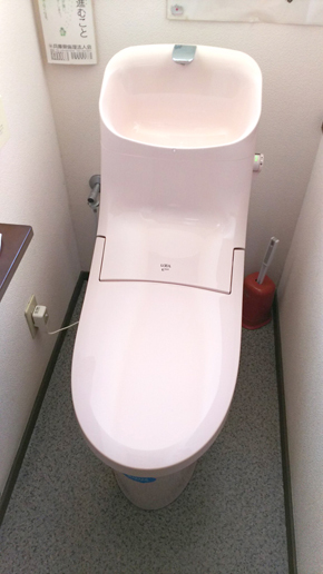 1F・2F両方のトイレを工事させていただきました。 アイボリーのトイレから「ピンクのトイレにしてみるの♪」とT様のちょっと冒険なご選択のお色だったそうですが違和感なく「可愛い!」と気に入ってくださいました。