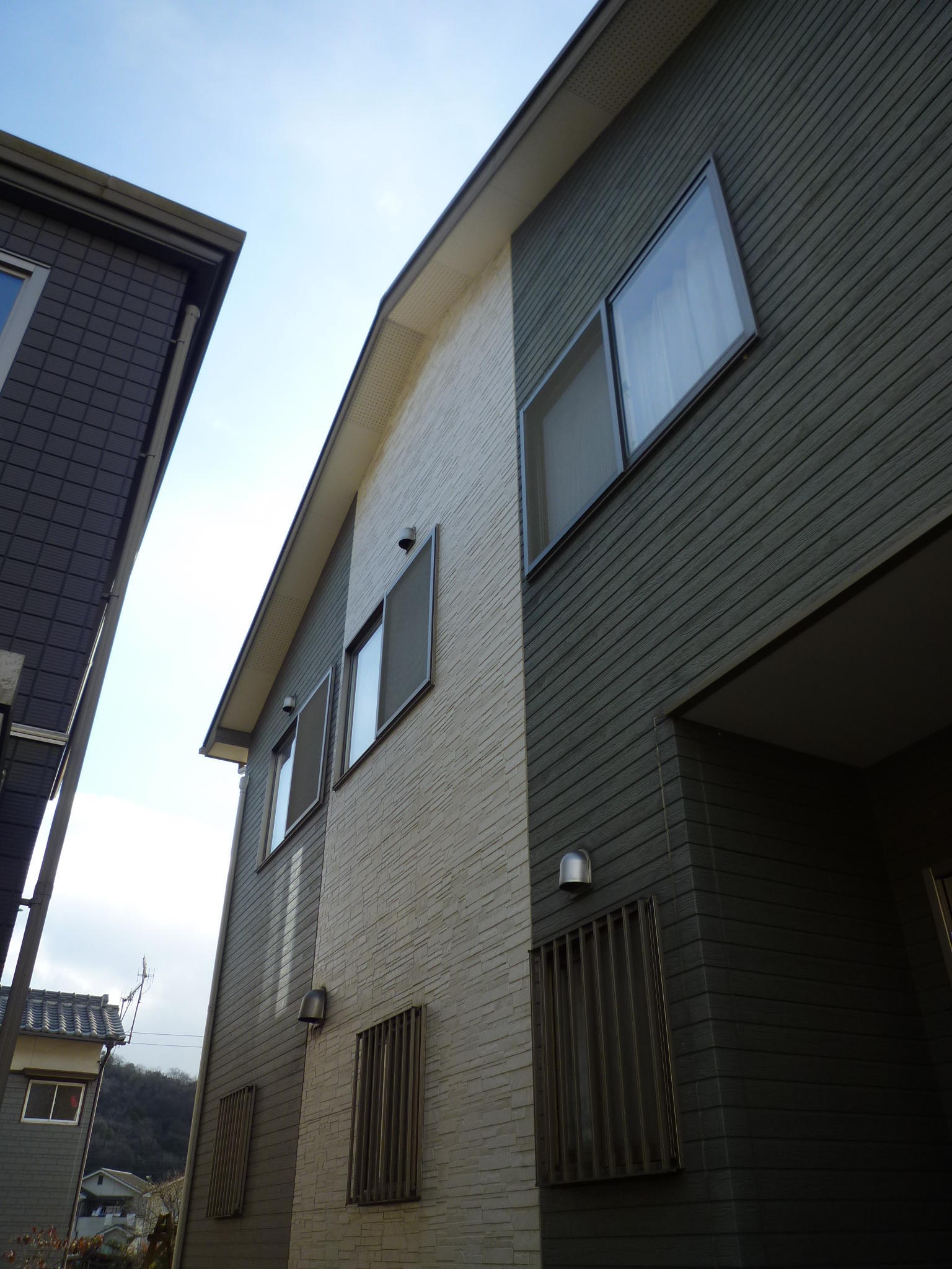 元々、2色使いの外壁だったのですが、1色にしたいとのことで、白に統一しました。 色に関しては色見本帳がありますが、小さくて判断しづらい場合はA4版程度のパネルに色を塗って確認していただきます。 太陽光に当てて確認すれば仕上がりのイメージが湧くのではないでしょうか?