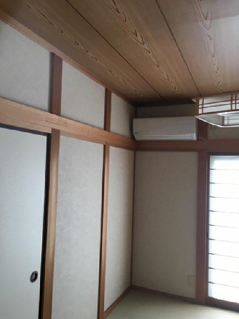 今回は和室のリフレッシュ工事を行いました。既存の壁がじゅらく壁だったのを、べニアを貼ってクロスを施工しました。将来、壁が傷んだ時、じゅらくの塗り替えよりクロスの張り替えのほうがコストを抑えられますよ!