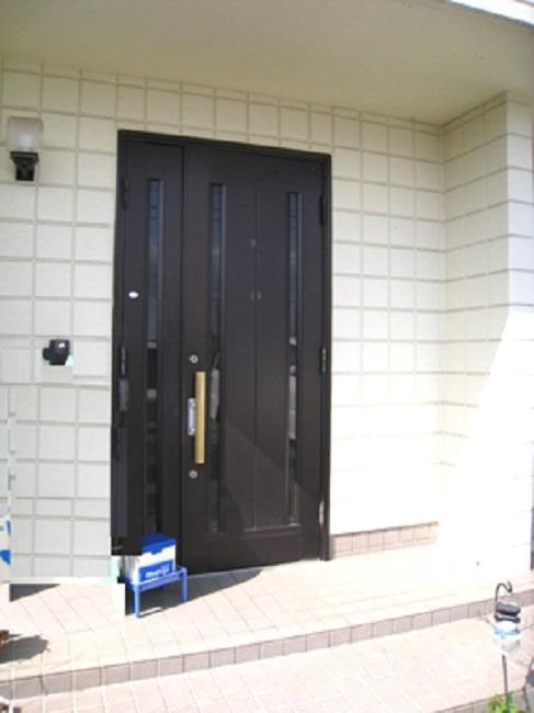 この度、玄関ドアを交換させて頂きました。現在の玄関ドアも進化しています。車のキーと同じ、電気錠の時代。ドアハンドルに触れれば開錠され、ドアを閉めれば自動的にロック。夜もドア上のLEDが感知点灯して出迎えてくれます。今回は親子ドアで、中央スリットは採光部分です。合わせて玄関ポーチ灯もコーディネート。やはり、よいデザイン・色柄は違いますね。シャープで落ち着いた雰囲気に仕上がりました。