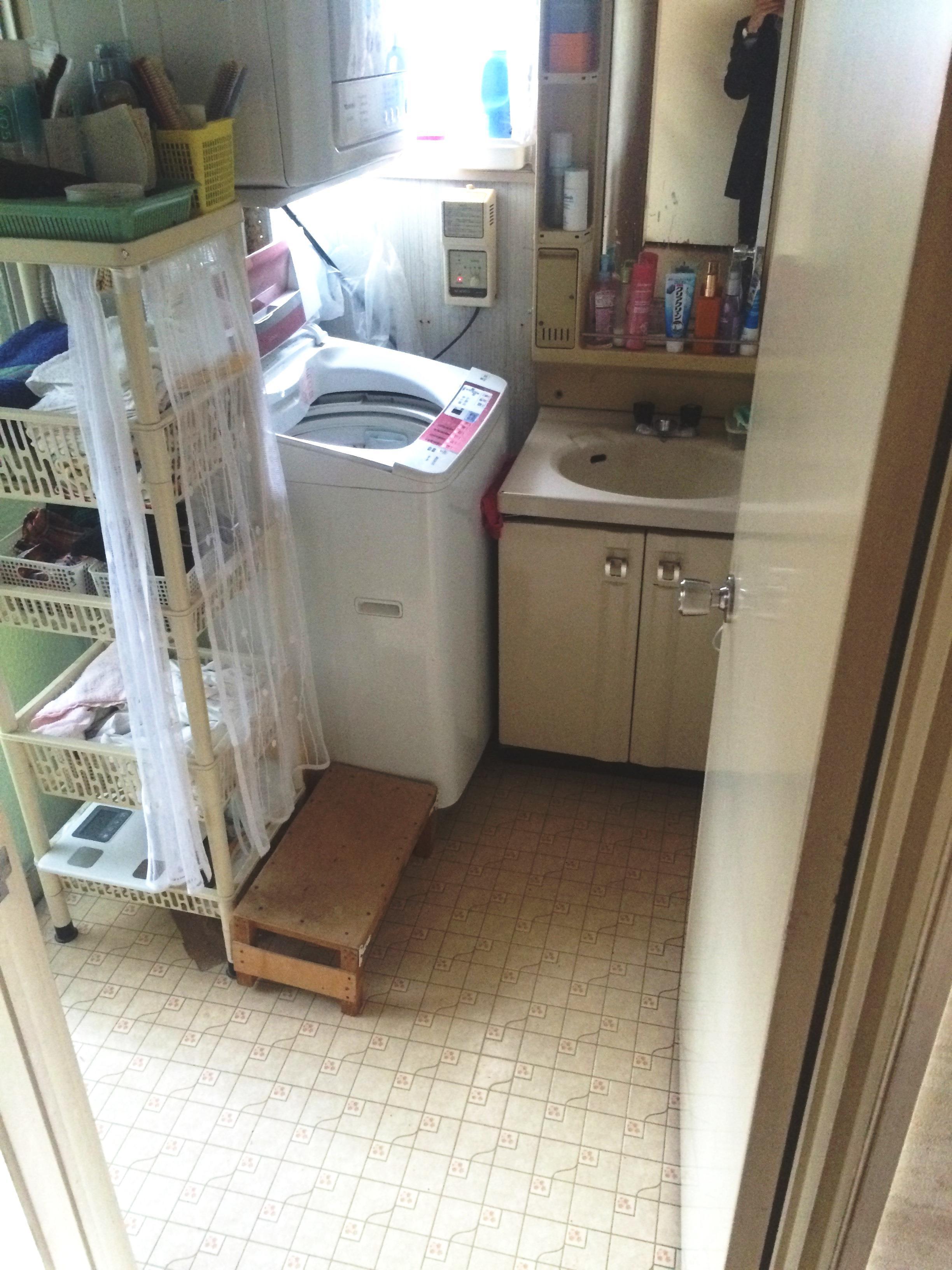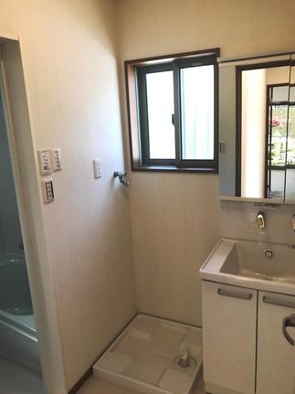 築30年の洗面室の改装工事を行いました。洗面室の間取りはそのままで、器具の入れ替えと内装工事のシンプルな内容です。
