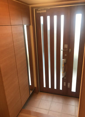 収納量も確保、採光量の多いドアを採用して明るい玄関になりました。
