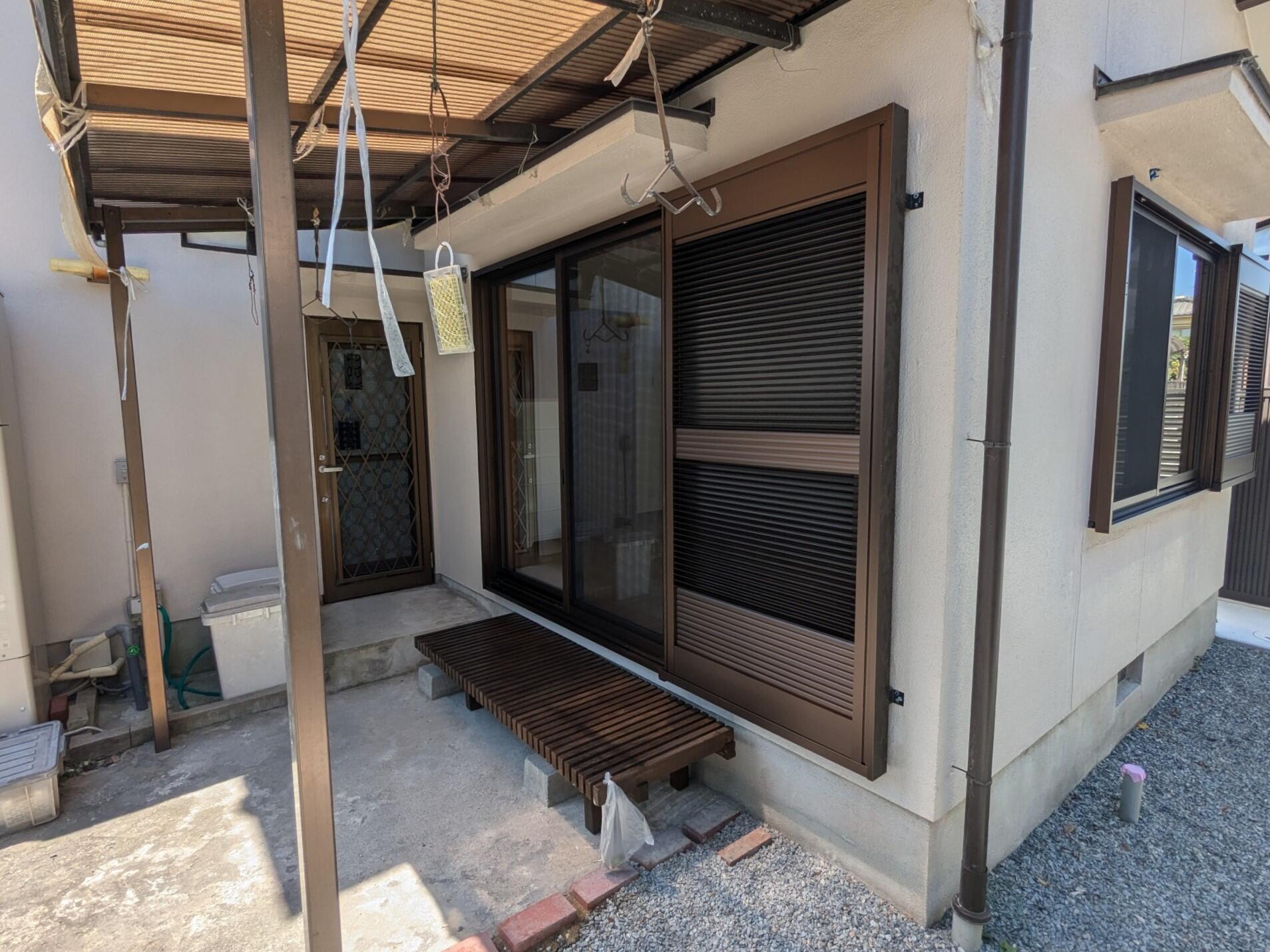この度、掃き出し窓の取替えリフォームをさせていただきました。 ルーバータイプで網戸の状態でも鍵がかかるため防犯になります。