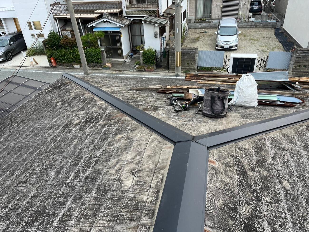 今回は屋根の棟部分を補修させて頂きました現場についてです。 こちらの現場は、今年の4月ごろの雹被害や台風による豪雨で部材が外れてしまっており、非常に危険な状態でした。 この度、屋根上部にある「棟部分」を新しく作り直しました! 職員さんが通る通路や周辺の住宅に破損したパーツが飛ぶ恐れもなくなり、安心してお過ごしいただける空間になりました!