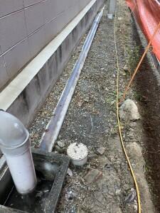 今回は、会所及び雨水排水配管取替工事をご紹介します。 外部の雨樋からの雨水を受ける会所があふれているとご連絡をいただき、工事をさせていただくことになりました。 工事前は雨水排水配管が劣化により反り返り勾配が取れてなく、会所に水が逆流し溢れていた状況でした。