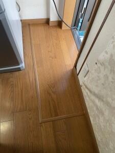 この度、シロアリの害による床の補修工事をさせていただきました。 防蟻工事をした上で床の部分張替えを行いました。 同じタイプのフローリングがないため床見切りで仕切って 施工しています。
