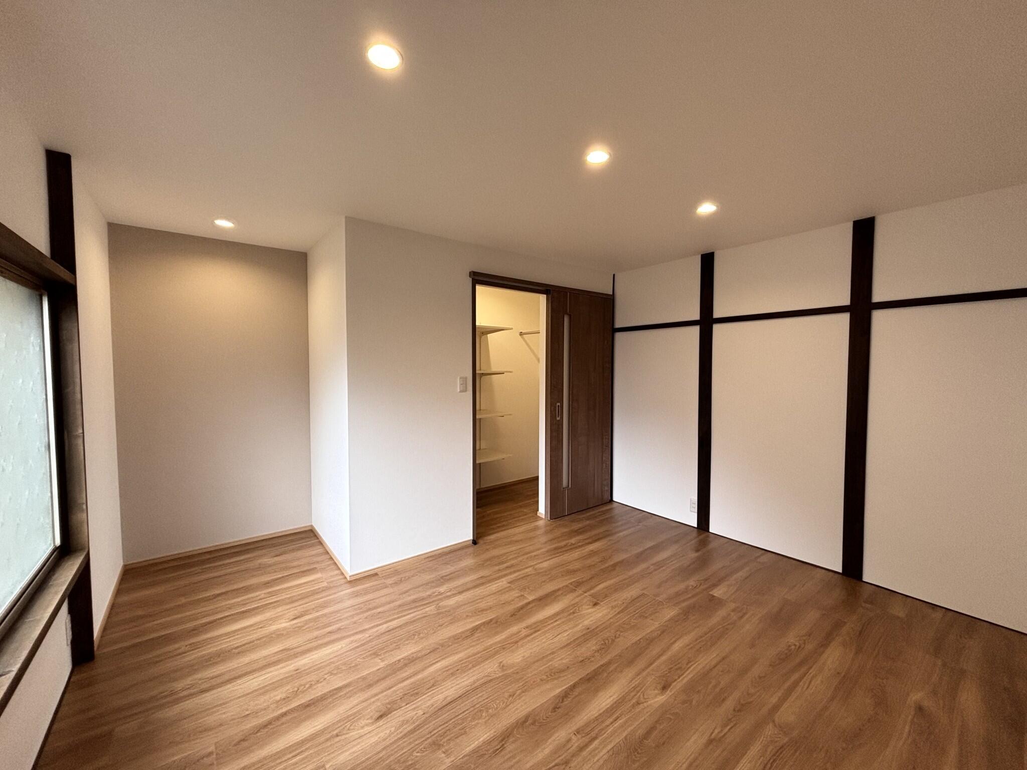 今回は、2部屋の和室を洋室に改装した事例をご紹介します。 娘様に家を受け継いでいくにあたり、補修が必要な箇所を直したいとご依頼をいただきました。 2階は主に娘様が使われるということで、娘様のご希望も伺いながら打ち合わせを進めました。 今回、新しくウォークインクローゼットを設け、収納力もアップしました。 元々小さい収納になっていたスペースは扉を外して形は残し、娘様が推しグッズを飾るスペースとして活用される予定です。 工事前は、畳の床にところどころ踏むと沈む箇所がありましたが、安定感のある床になりました。 また、柱を濃い色に塗装したことで、シックモダンな空間へと生まれ変わっています。 その他にも目には見えない部分の工事(床・天井・開口部の断熱工事)も行い、過ごしやすい空間となりました。 こだわりの詰まった明るくおしゃれなお部屋になり、仕上がりに大変喜んでいただけました。 「あんたに頼んでよかった」と言っていただき、とても嬉しかったです。