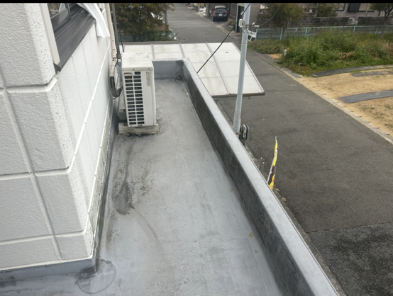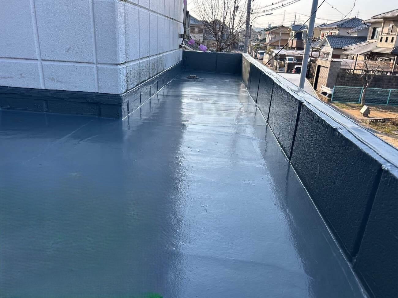 この度、ベランダの防水工事を行いました。 長年使っていて、破れ等があり、この度張り替えて上から塗らせて頂きました。
