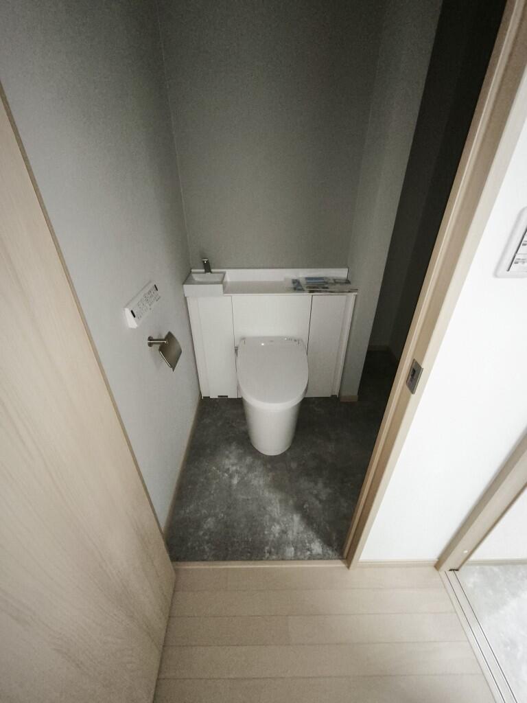 この度、トイレのリフォームをさせていただきました。 収納付の便器への取替え、内装のリフレッシュ、収納の拡大等 の改装です。