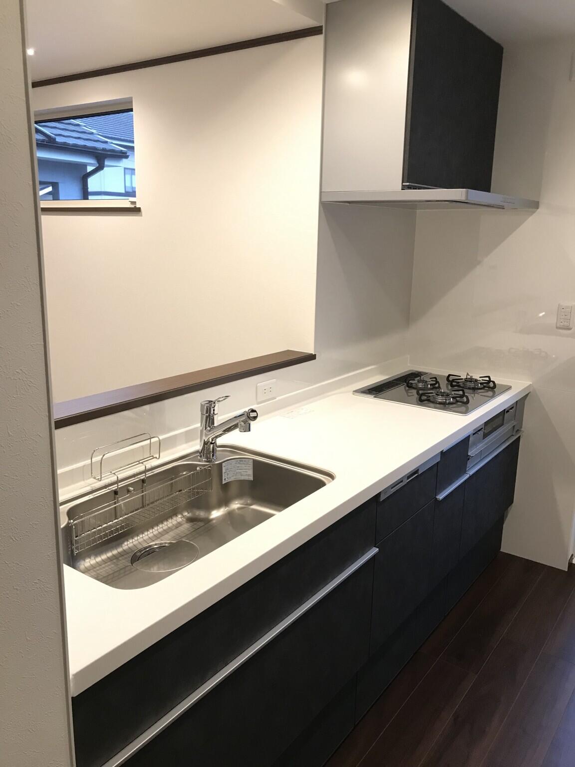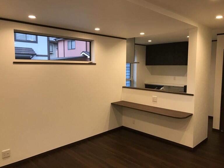 間取り変更を含むリノベーション工事が完成しましたのでご紹介します。 元々は玄関ホールだった部分にキッチンを移設しました。 キッチンの対面壁には幅2メートル程度のカウンターを設置して、朝食など簡単な食事を取れるようにしました。 洗面・浴室につながる通路を家事室兼用に配置しました。 洗濯後に室内干しできる天井物干しや、クローゼットで家事の効率がアップして時短が出来るように。 間取り変更に伴い階段も架け替えしました。 色を茶色一色ではなく、白色とのツートンカラーにしてスタイリッシュな階段に。 1階のトイレは背面に収納付きの便器を新設しました。 2階にはトイレが無かったので、今回トイレを新設しました。