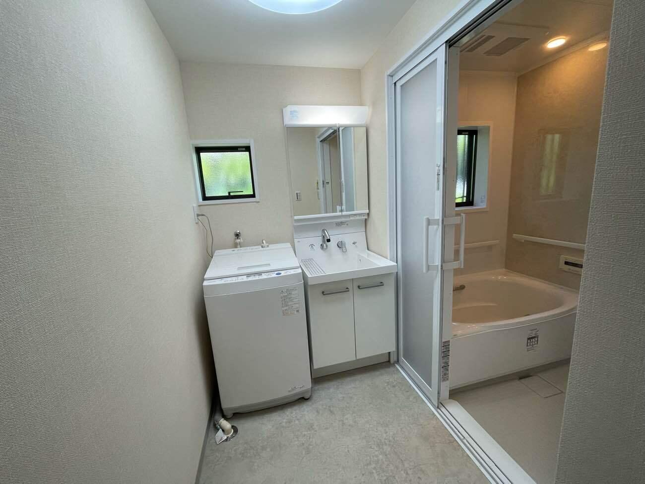 築60年以上の木造住宅で浴室と脱衣室の改装工事を行いました。 きっかけは、お風呂の水漏れ、洗面台が廊下にあり長年ご不便だったので、どうにかならないかとご相談いただきました。 普段はお母様一人でお住まいですが、近い将来に息子様ご夫婦も移り住まわれるご予定があるとの事で、一緒にお打ち合わせさせていただきました。 浴室はタイル張りで一般的な浴室よりも大きなサイズでしたので、システムバスに入れ替えをして尚且つ、サイズダウンして脱衣場を拡張することで、洗面化粧台も設置することをご提案しました。 また、ついでにと洋室の床がぶわぶわして危険な状態でしたので、断熱と下地の補強、フローリングの施工や、ベランダの波板工事、ポスト交換、樹木の根っこが押して倒れかかっていたブロック塀の積み替えなどを一緒にご依頼いただきました。 工事後のご感想をお聞きすると、 見違えるようにきれいになった浴室、洗面や工事期間中の職人の対応にダイヘン満足しています とのお言葉をいただきました。 工事費220万(税込) 工期10日