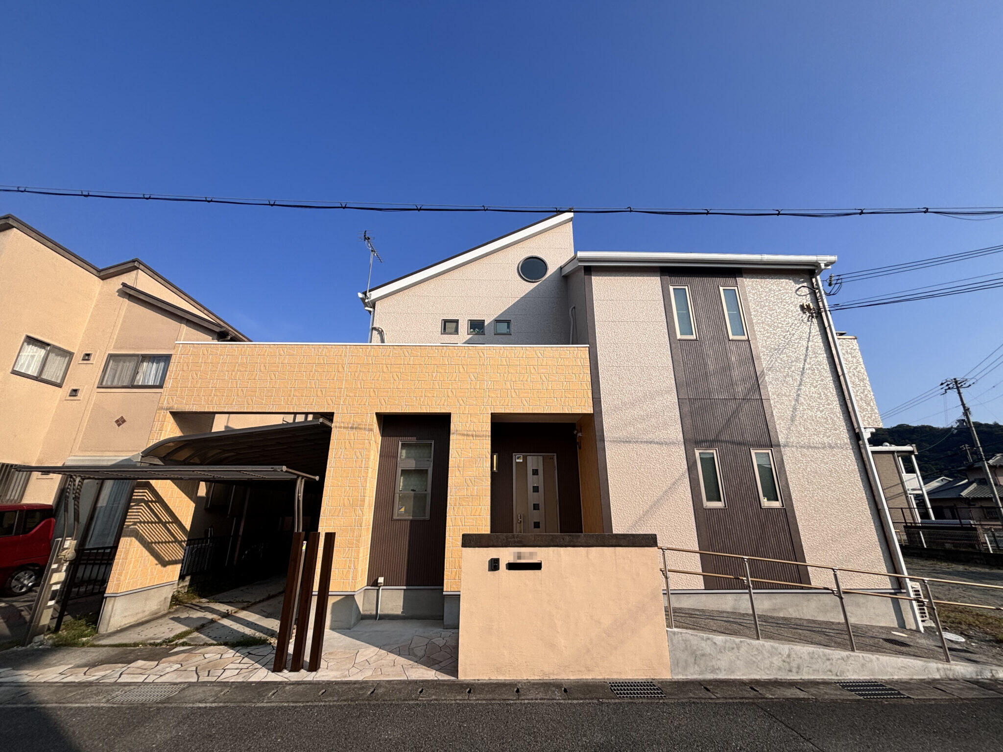 こんにちは。 リフォーム事業部の四間です。 外壁塗装工事が完了しましたのでご紹介します。 コーキングが劣化し、ボロボロと落ちてしまっているということでお問い合わせいただきました。 現地調査にお伺いすると、日当たりが良い部分を中心にコーキングにひび割れや剥がれがある状況でした。 外壁も全体が色あせてきており、触ると白い粉がつくチョーキング現象が発生していました。 外壁の色は気に入っておられるとのことでしたので、元の色に近い色を選定し、塗装させていただきました。 また、外壁の工事と併せて、ひび割れが発生していたベランダ2か所の防水工事も行いました。 塗装をすることで光沢が戻り、綺麗な仕上がりになりました。 パターン付けも含め、気に入られていた当初の色味を再現することができ、お喜びいただけました! 費用は、税込み2,330,000円 工期は、約4週間でした